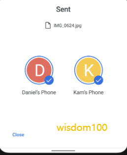 이후 전송할 기기에 체크를 한 후에 상대 기기에서 전송을 받는다는 알람이 오면 수락을 누르면, 바로 해당 콘텐츠를 상대방 기기에 전송할 수 있다. 이는 스마트폰과 컴퓨터에서 동일하게 작동하는 방식이다. 물론 위에 컴퓨터에서 파일을 보낸 방식처럼 모바일에서 Nearby Share를 실행한 후에 전송할 기기를 선택하고 전송할 이미지 또는 파일을 선택한 후에 공유 아이콘을 눌러도 동일하게 사진 또는 파일을 전송할 수 있다. 단, 앞에서도 언급했듯이 멀리 떨어진 기기 간에는 사용할 수 없는 근거리 파일 전송 방식으로, 5M 이내에 양 디바이스가 위치해야만 파일 전송이 가능하다. 하지만 스마트폰의 SNS로 받은 이미지 또는 파일을 컴퓨터에 저장하거나, 역으로 컴퓨터에 저장한 이미지 또는 파일을 스마트폰의 SNS 기능으로 다른 사람에게 전송할 때 매우 유용하게 활용할 수 있다.